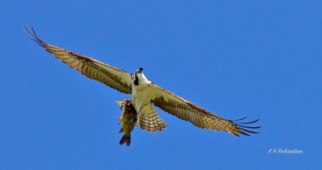 Bald Eagles (Haliaeetus leucocephalus) live both north and south of Thomson Marsh and often fly over, usually on their way to or from Mission Creek on the northern edge of my beat. Occasionally, they show up in pairs or as rivals riding the thermals, chasing but rarely catching each other or engaging in combat….(Pandion haliaetus) Thomson Marsh, Kelowna, BC. There were a couple of other Ospreys in the area that day as well, flying well above her…. No conflict that I could see, but she was clearly aware of something “up there.”