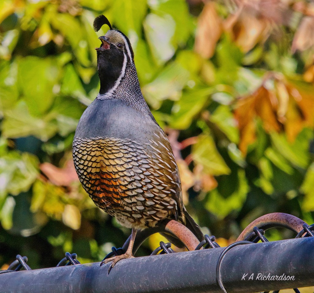 Johnny One Note practises for Spring! California Quail (Callipepla californica) Belmont Park, Kelowna, BC.