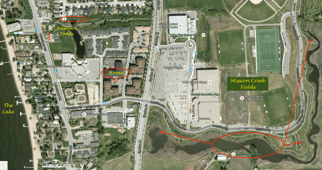 Black-headed Grosbeaks are less common in the Okanagan, in my experience, than at The Coast. I felt lucky in the spring, while seizing the opportunity to explore Mill Creek Park while our vehicle was being serviced nearby, to find an adult bird and to coax him down from his treetop perch to something more accessible to the camera. I was even luckier in the autumn, when showing my younger son around Mission Creek Greenway, we came across a juvenile BHGR, a first for both of us!