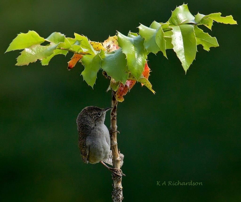 House Wren – 5 Same park, different day, a hot day! Our little wren has found an Oregon Grape sunbrella!