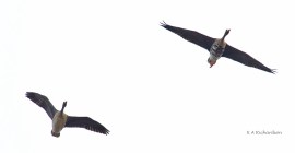 Greater White-Fronted Geese over Munson Pond in autumn.