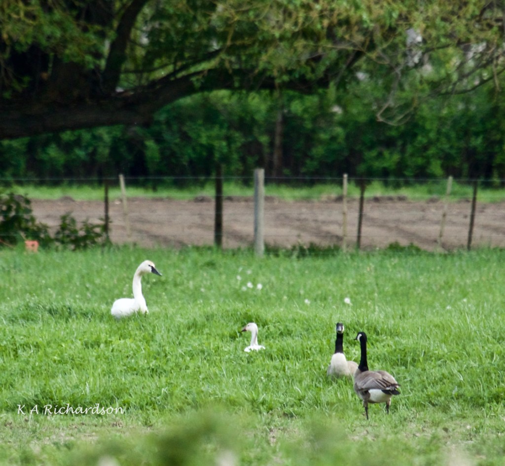 Tundra Swan and Snow Goose share Thomson Farm field.