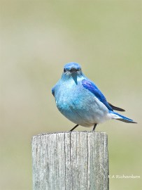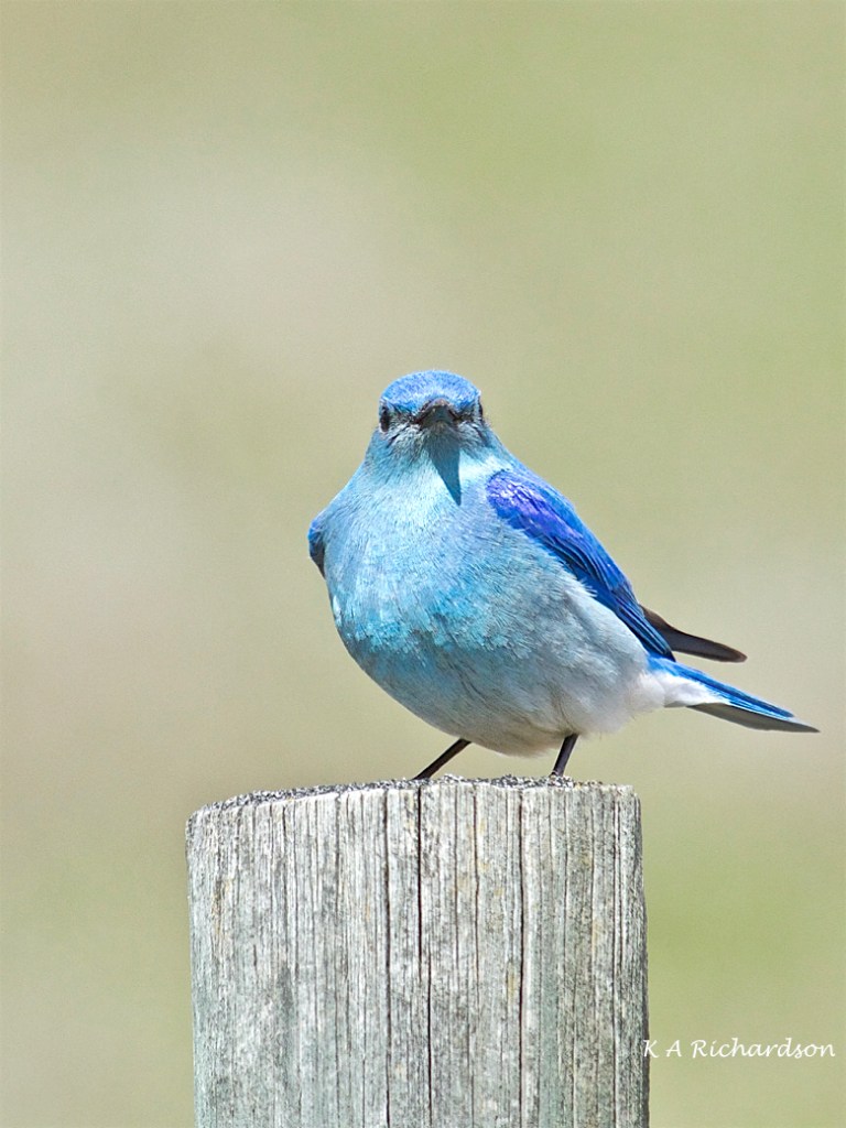 Mountain Bluebird male (Sialia curricoides) – 7 Checking out the shutter bug: way to big to digest after that feather-ball!