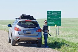 Nana at the entry to Grasslands National Park.