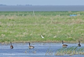 Whitewater Lake, MB. (Record only)The short, thick-necked Cattle Egret spends most of its time in fields rather than streams. It forages at the feet of grazing cattle, head bobbing with each step, or rides on their backs to pick at ticks. This stocky white heron has yellow plumes on its head and neck during breeding season. Originally from Africa, it found its way to North America in 1953 and quickly spread across the continent. Elsewhere in the world, it forages alongside camels, ostriches, rhinos, and tortoises—as well as farmers’ tractors.