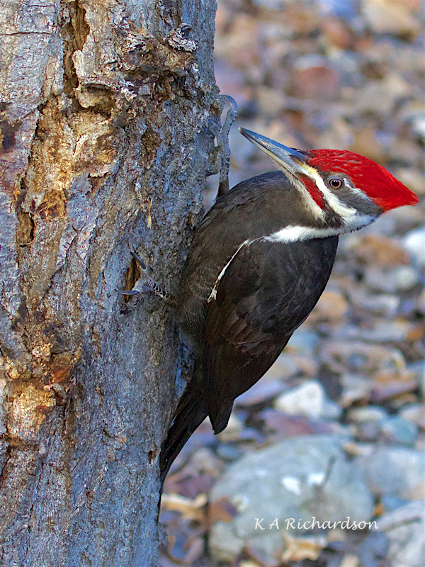 Pileated Woodpecker male (Drycopus pileatus) -07 Mission Creek, Kelowna, BC. near Gordon Bridge. Fealess Foz