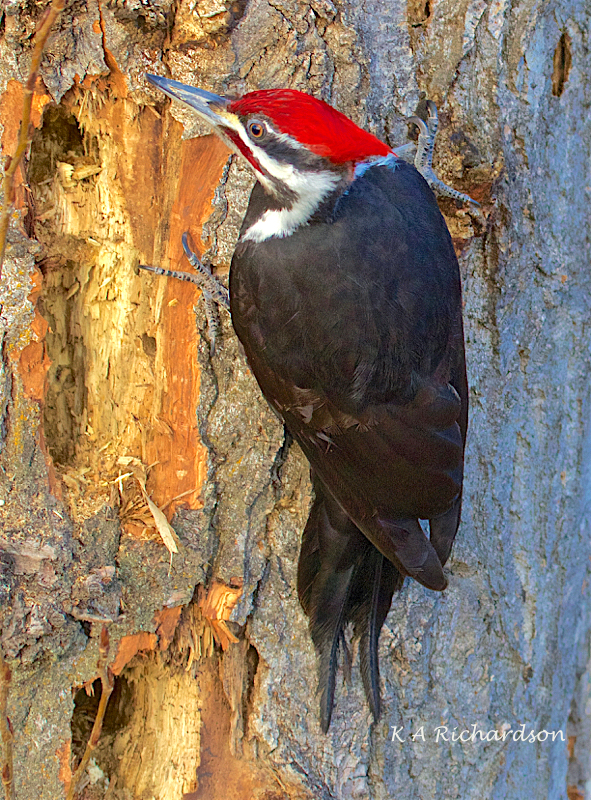 Pileated Woodpecker male (Drycopus pileatus) -17 Mission Creek, Kelowna, BC. near Gordon Bridge. Fealess Foz
