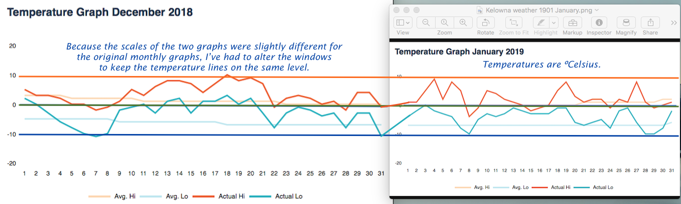 Then February arrived: this graph shows how our Feb. temperatures have changed over the last three years. We had only a little snow in 2019-, but, as you can imagine, it did not melt until mid-March. Click to enlarge.