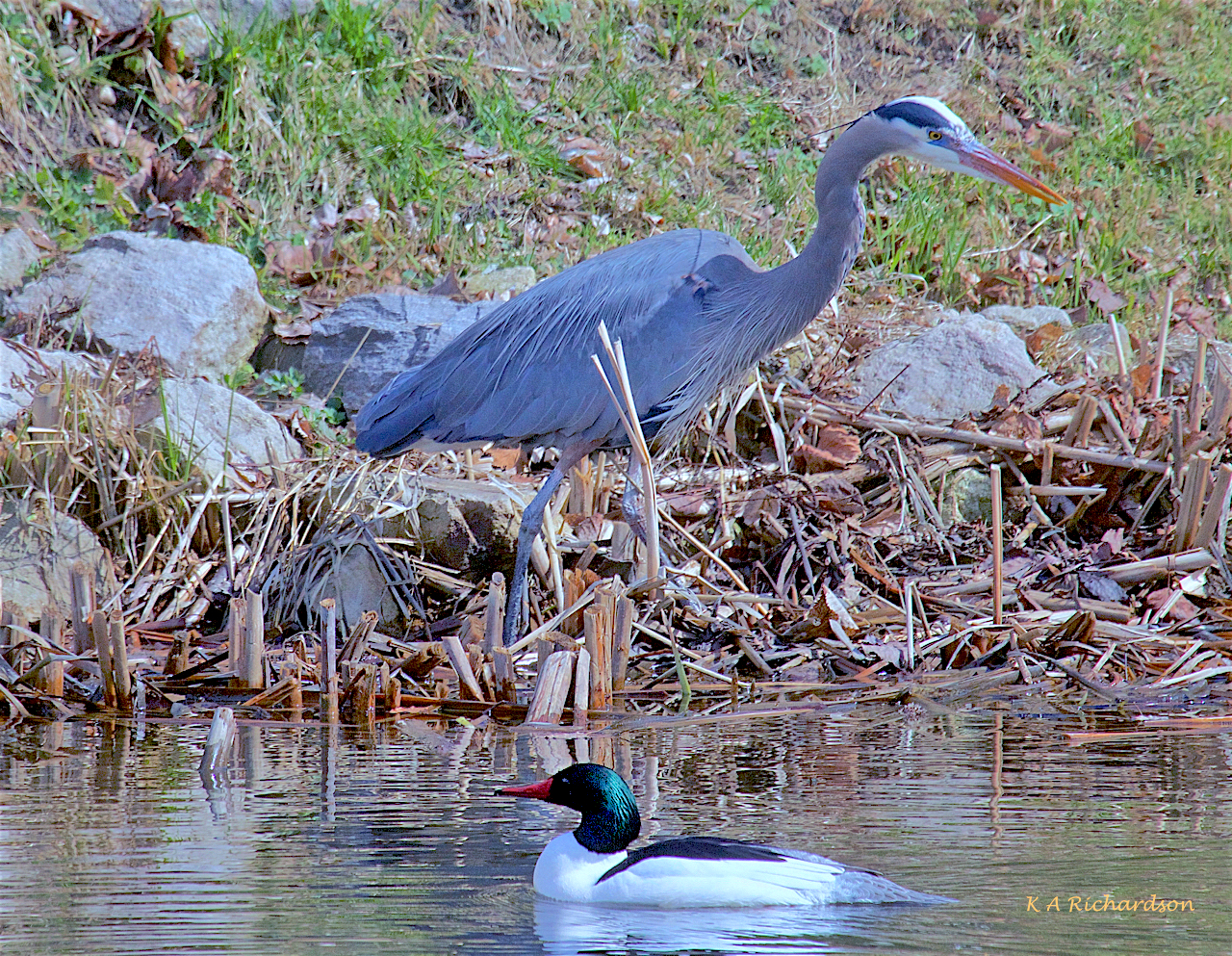 Keeping Loverboy company was a pair of Hooded Mergansers.