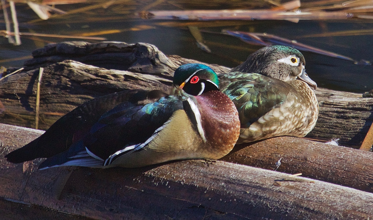 Molly the eye duck with Homher the iDuck, SE sector, Thomson Marsh, Kelowna, BC. It was a coincidence that she crossed paths with Homher; they don’t necessarily hang out together….