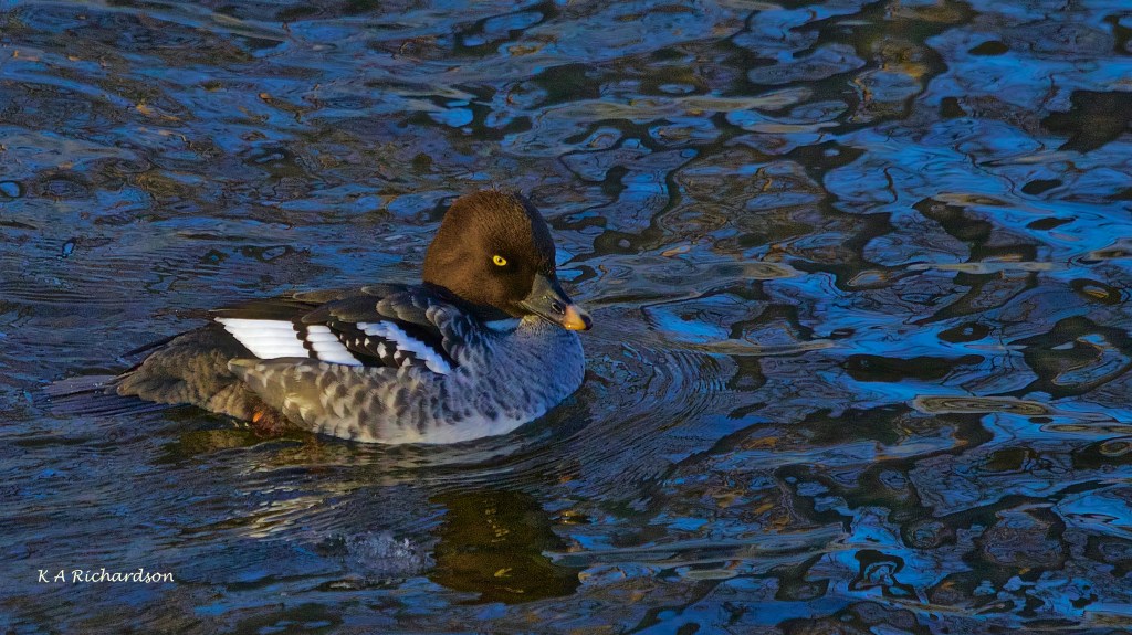 So the scene was set for another visit. The good light, however, didn’t return for several days and it was the end of the first weekend of December before I got back to the raft. On this occasion, I was, I must confess, looking mainly for the BAGOs. I wasn’t disappointed. First I found a pair with a tagalong female. And a little while later, I found her bashful mate a little farther upstream. I spent over an hour during two sessions (went off looking in vain for a Dipper I’d seen in November) with both species.