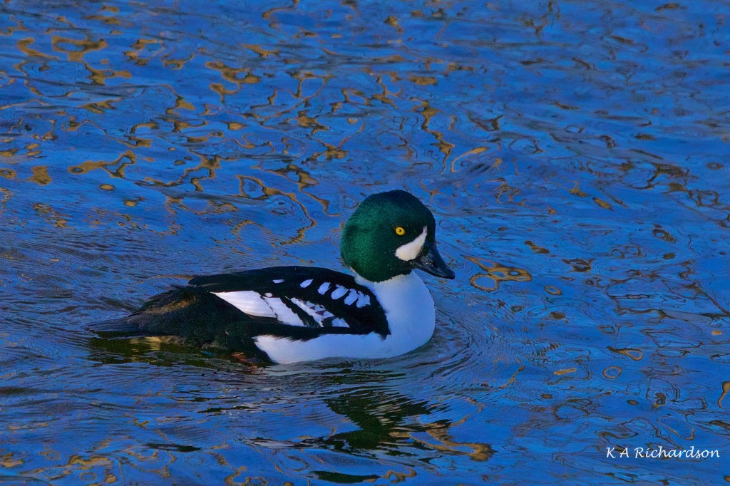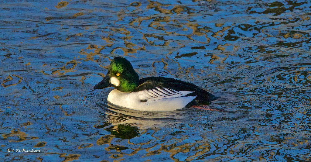 I was quite fortunate to get this shot of a BAGO and COGO drake almost side by side. Better shots of the COGO can be found below this one. One of my favourite features of this creek is the way the light plays on the water. In some cases, I’ve played with colour, too, to get the images the way I like ’em. If you’re a Purist, that’s your problem….