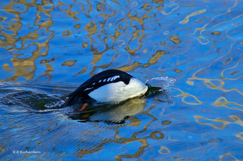 Three days later, I returned on a gorgeous sunny day and had some great fun with the COGOs. Sadly I saw the Barrow’s only in rapid flight heading downstream. I thought they might be heading south…. Hope you enjoy the COGO images. As you’ll see, I was beginning to get a sense of a dramatic relationship….