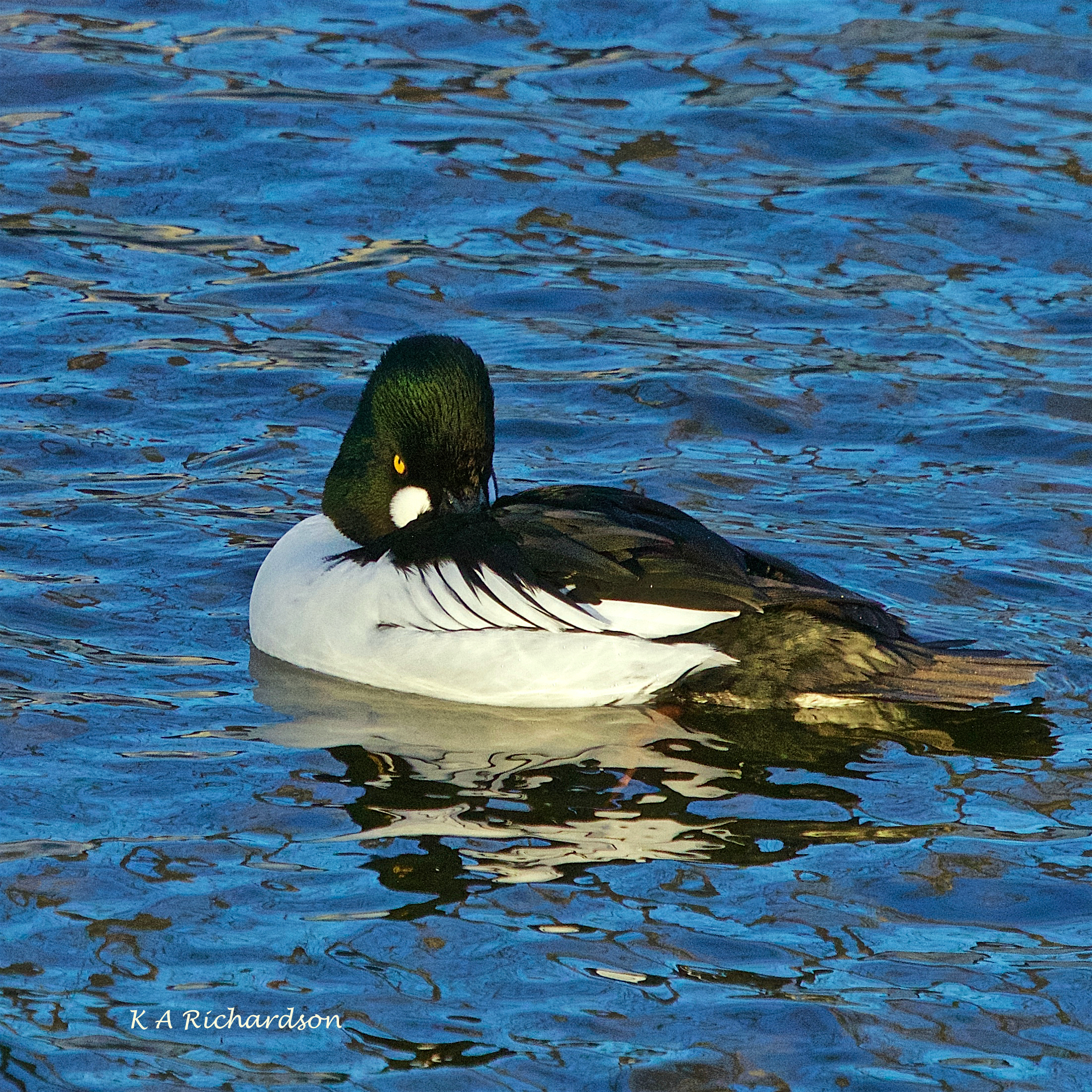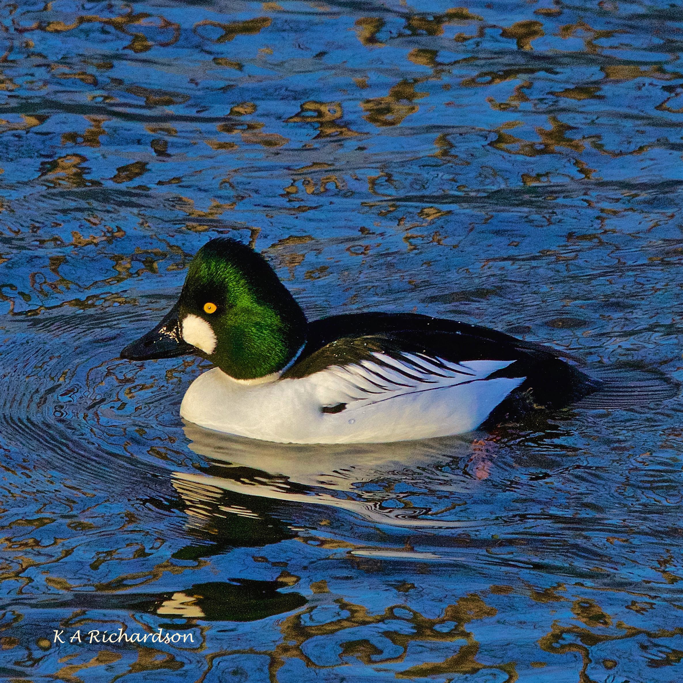 I was quite fortunate to get this shot of a BAGO and COGO drake almost side by side. Better shots of the COGO can be found below this one. One of my favourite features of this creek is the way the light plays on the water. In some cases, I’ve played with colour, too, to get the images the way I like ’em. If you’re a Purist, that’s your problem….