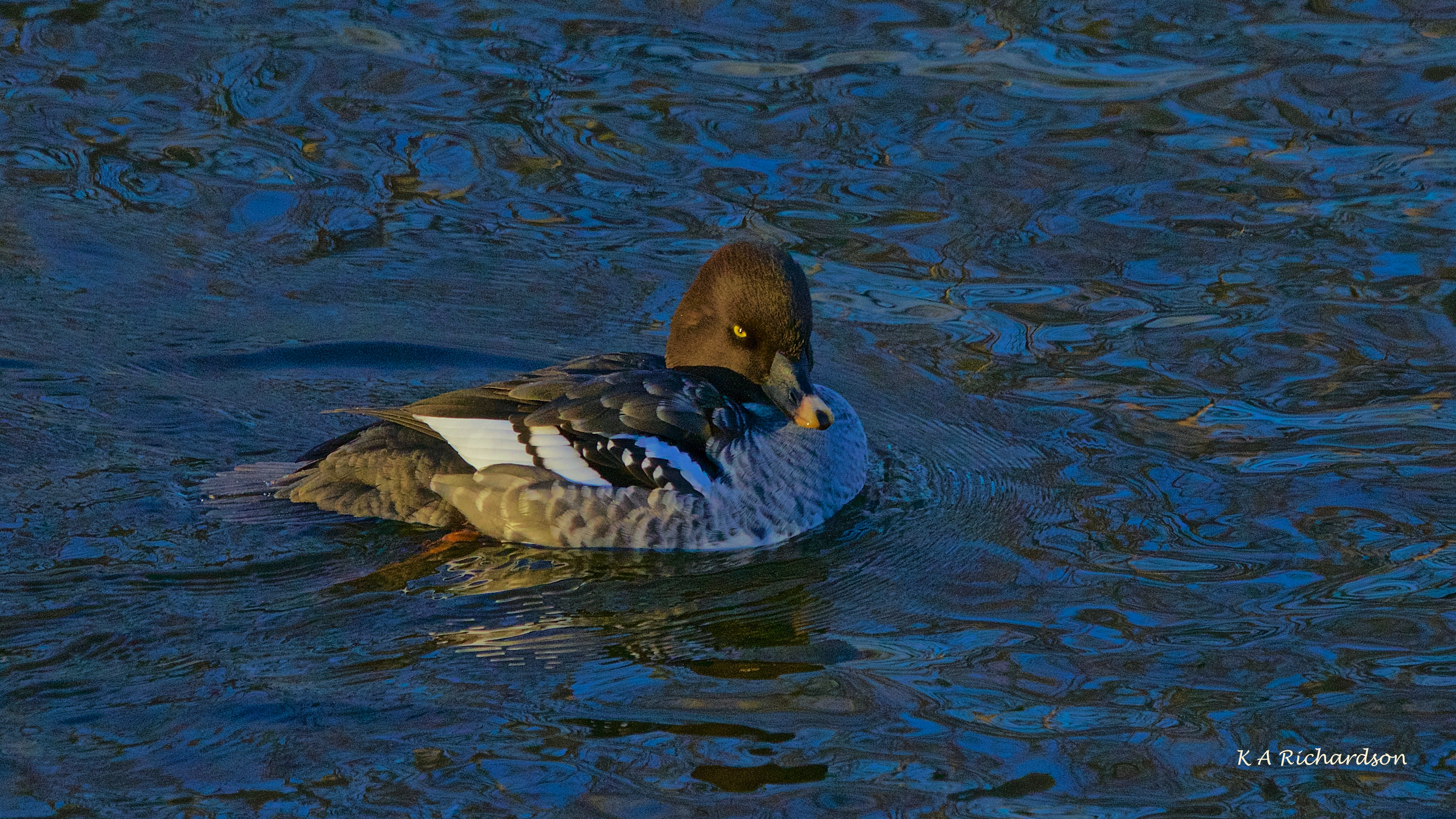 So the scene was set for another visit. The good light, however, didn’t return for several days and it was the end of the first weekend of December before I got back to the raft. On this occasion, I was, I must confess, looking mainly for the BAGOs. I wasn’t disappointed. First I found a pair with a tagalong female. And a little while later, I found her bashful mate a little farther upstream. I spent over an hour during two sessions (went off looking in vain for a Dipper I’d seen in November) with both species.