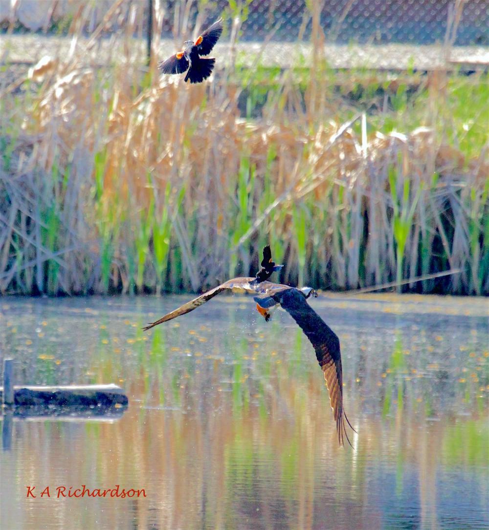 Red-winged Blackbirds vs Osprey, April 2016, Belmont Pond