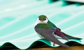 violet-green-swallow-on-corrugated-fiberglass Surfing the fibreglass waves on the roof of a neighbour’s carport….
